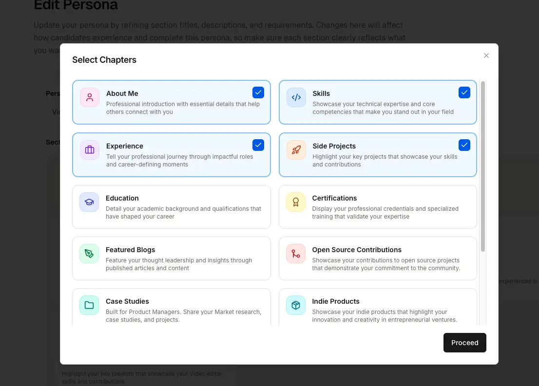 Introducing Chapter Blocks. We believe your professional journey is similar to a book consisting of distinct chapters, like your education, your experience, the projects you have built, all tell something unique about your book of professional journey, and hence, Chapter Blocks were born.