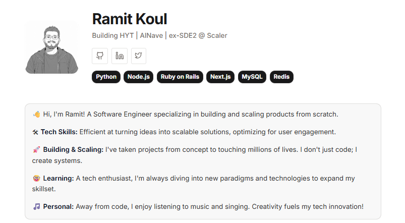 - Define your builder identity: Before you start posting, reflect on what kind of a builder you are, this clarity helps your entire personal brand for developers. Your identity helps bring consistency to your profile, start by writing a compelling builder bio.