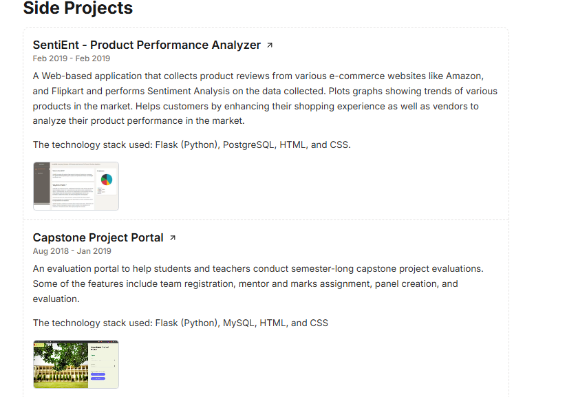 - Curate projects that tell a story: Don’t just upload showcase projects online in a narrative, making a clear note on the problem, the process and the outcome. Because a strong tech portfolio for developers isn’t about perfection- it's about evolution.